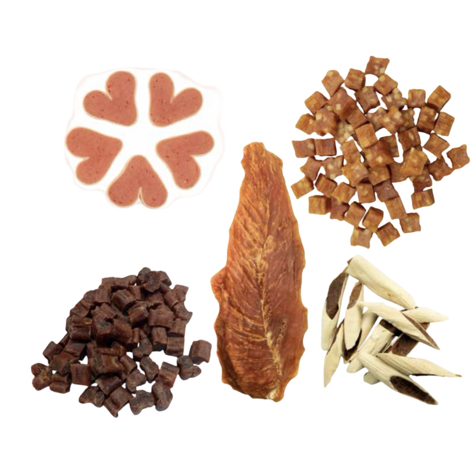 Hearts: Composition : Viande de poulet, poisson, glycerine végétale, sorbitol, protéine végétale, amidon.