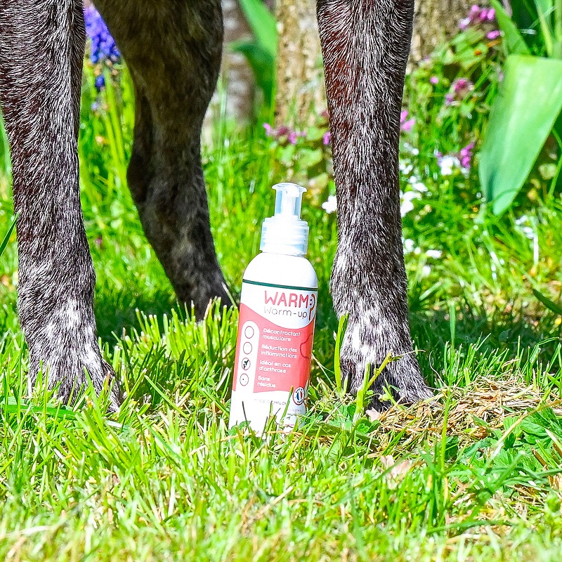 Warm est un gel massant décontractant pour détendre les muscles de votre chien.
